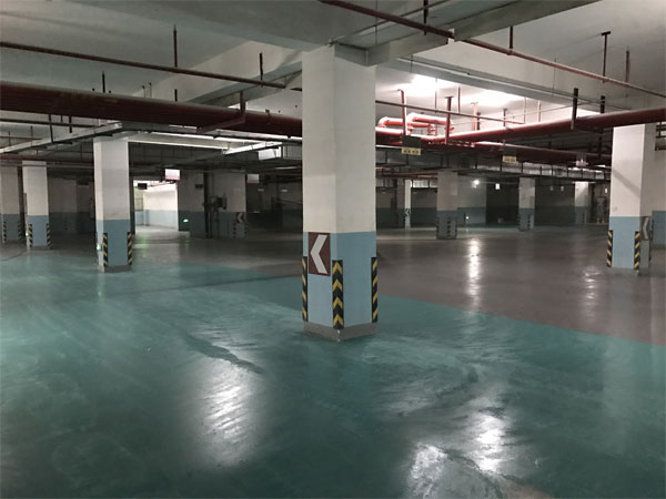 環氧地坪不起塵,沒有縫隙,有防塵作用,還耐磨防滑;常見的酸堿化學物質不易將它損壞;加上外觀上平坦亮麗,色彩可有多種挑選,美化地下停車場。
