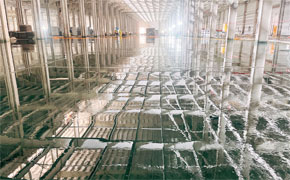 本項目亮點在于二次成型一體化整體地坪施工解決方案,施工面積10萬平方、采用品牌頑固地坪材料,從基礎刨銑-混凝土精細整平-鋼筋網片鋪設-金剛砂施工-固化劑拋光、養護蓋膜-聚氨酯填縫等。
